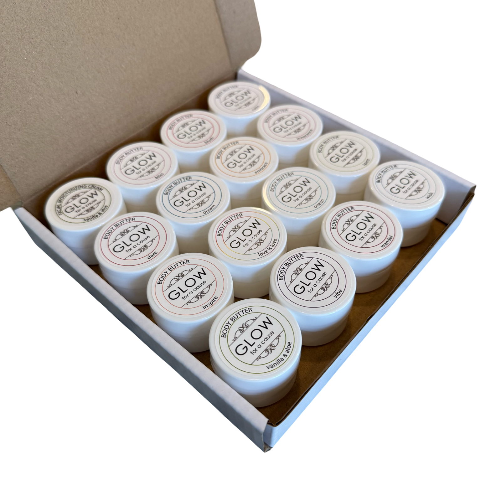 This set includes sample sizes of our 15 body butters & our best-selling face cream!
